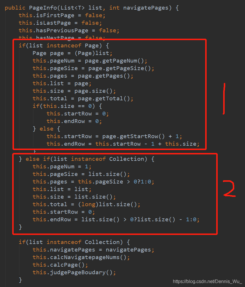 - 分页查出所有的结果,或者分页只查出pageSize的条数,total总数不对,请看下面2个红框内源码,正常情况从数据库直接查询出来的结果都是Page类型,而自己拼装的集合结果一般是Collection,这样直接从数据库查询出的结果可以分页成功,而自己拼装的集合的size是直接