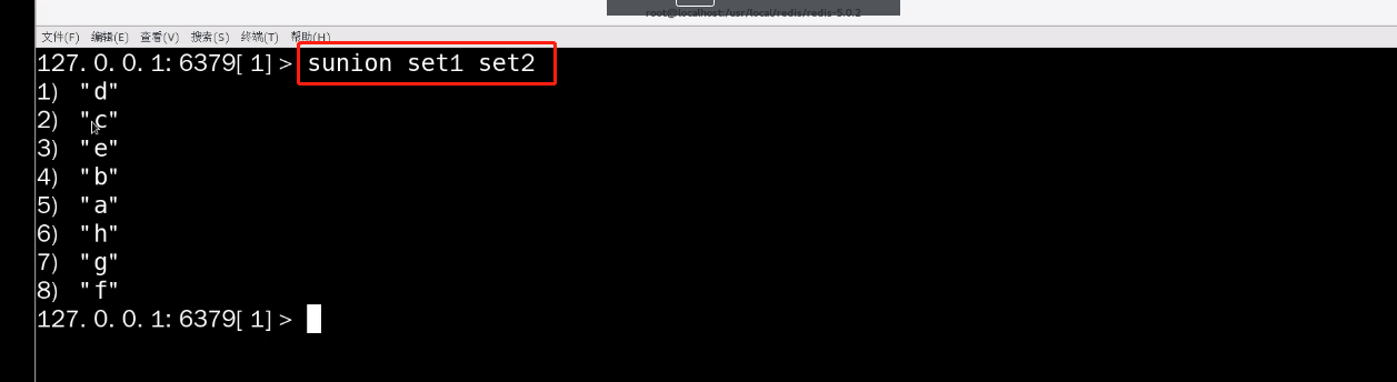 sunion--并集,将两个集合进行合并(将两个集合合并在一起,并将重复的元素去掉)