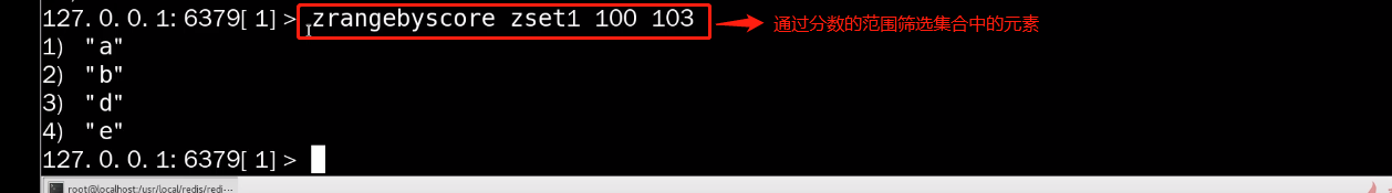 命令:zrangebyscore zset1 100 103