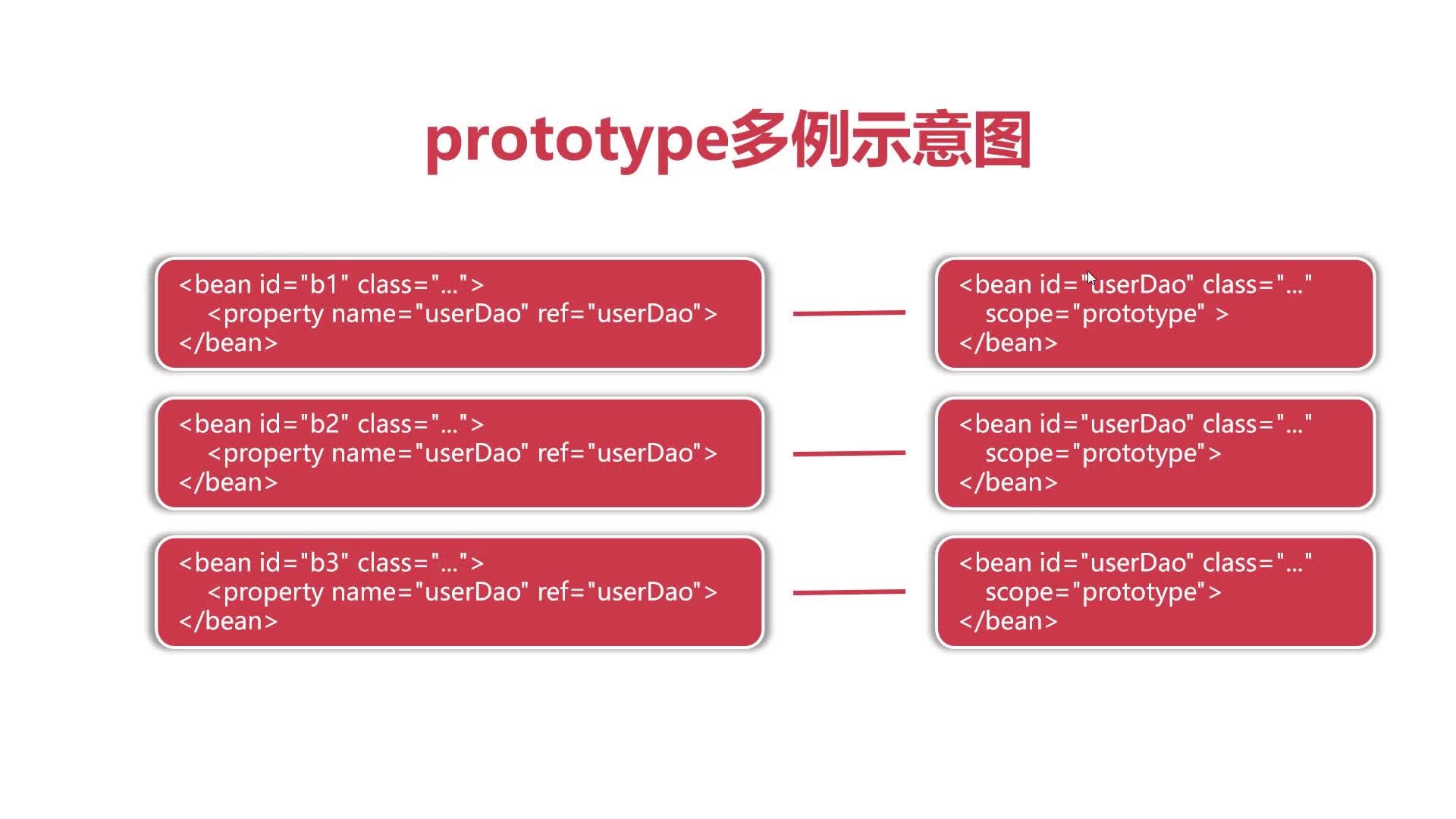 scope=prototype的意思是,每次使用时,需要创建一个新的实例对象,占用更多资源,不存在线程安全问题。