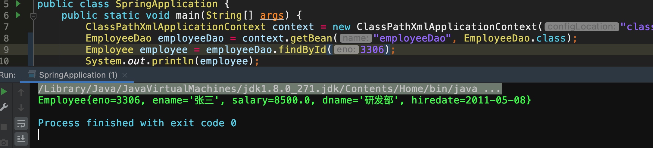 Employee employee = jdbcTemplate.queryForObject(sql,