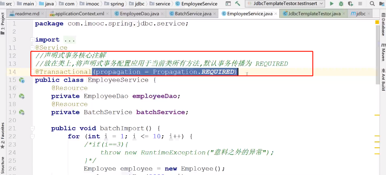 类中进行注解配置 propagation(事务的传播方法)