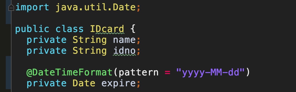 - 使用单个参数,接收时间格式数据时,由于前台回传的是一个字符串,在后端要转换为Date格式,Spring MVC提供了@DateTimeFormat注解帮助我们转换,注解里pattern要严格按照前台输入的格式,比如前台输入了2000-11-09这样的格式,pattern里就要写成yyyy-MM-dd: