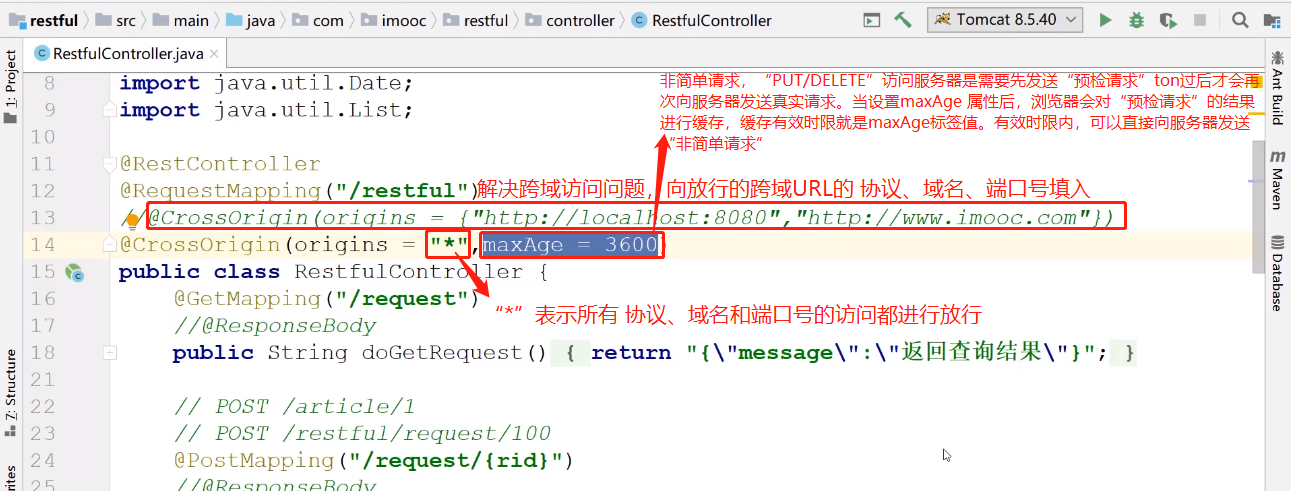 作用是,缓存预检请求的结果。在设置的maxAge 时间范围内不需要发两次请求了,而是直接向服务器发送非简单请求“PUT/DELETE”即可。