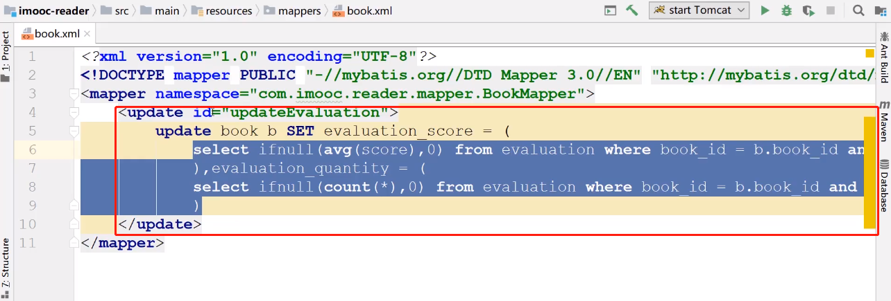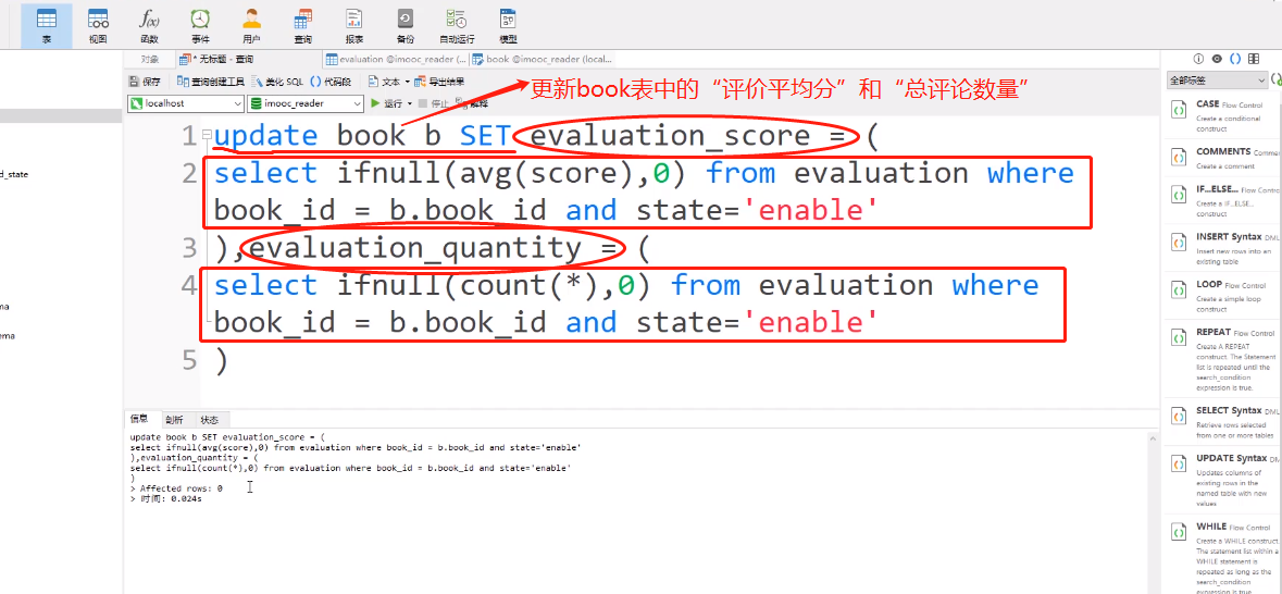 创建更新图书评论评分/评论总数的方法