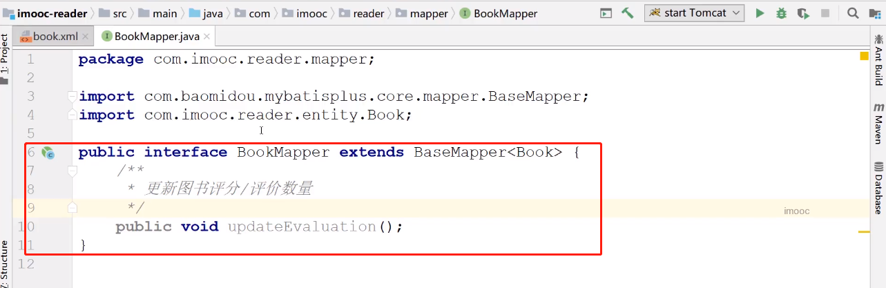 第二步:在BookMapper接口中,