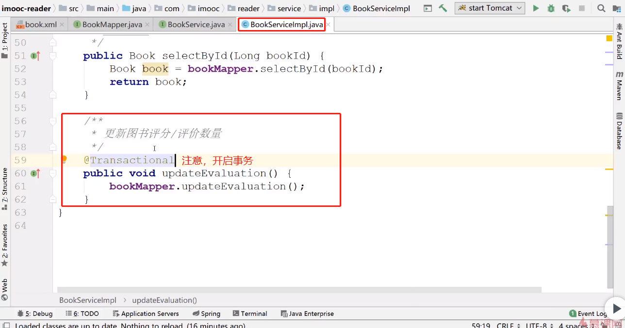 第四步:到bookService接口的 实现类中完成更新代码