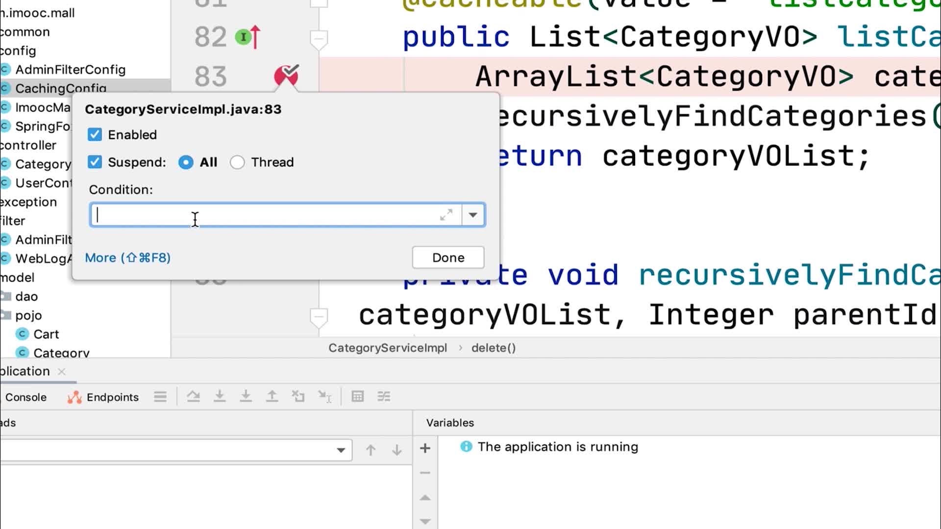 IDEA中的条件断点,右键点击断点