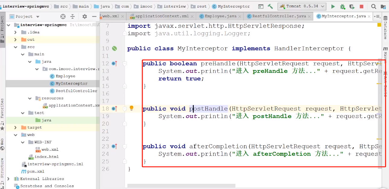 1,拦截器(interceptor)-- 对控制器Controller中的方法,进行前置、后置处理