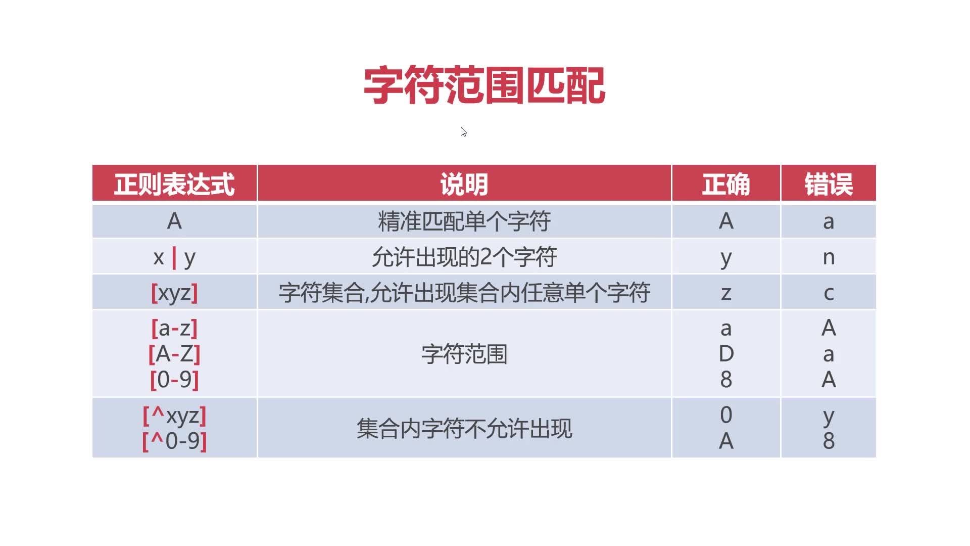 A单选x|y多选[a-z]字符集合[^a-z]不包含