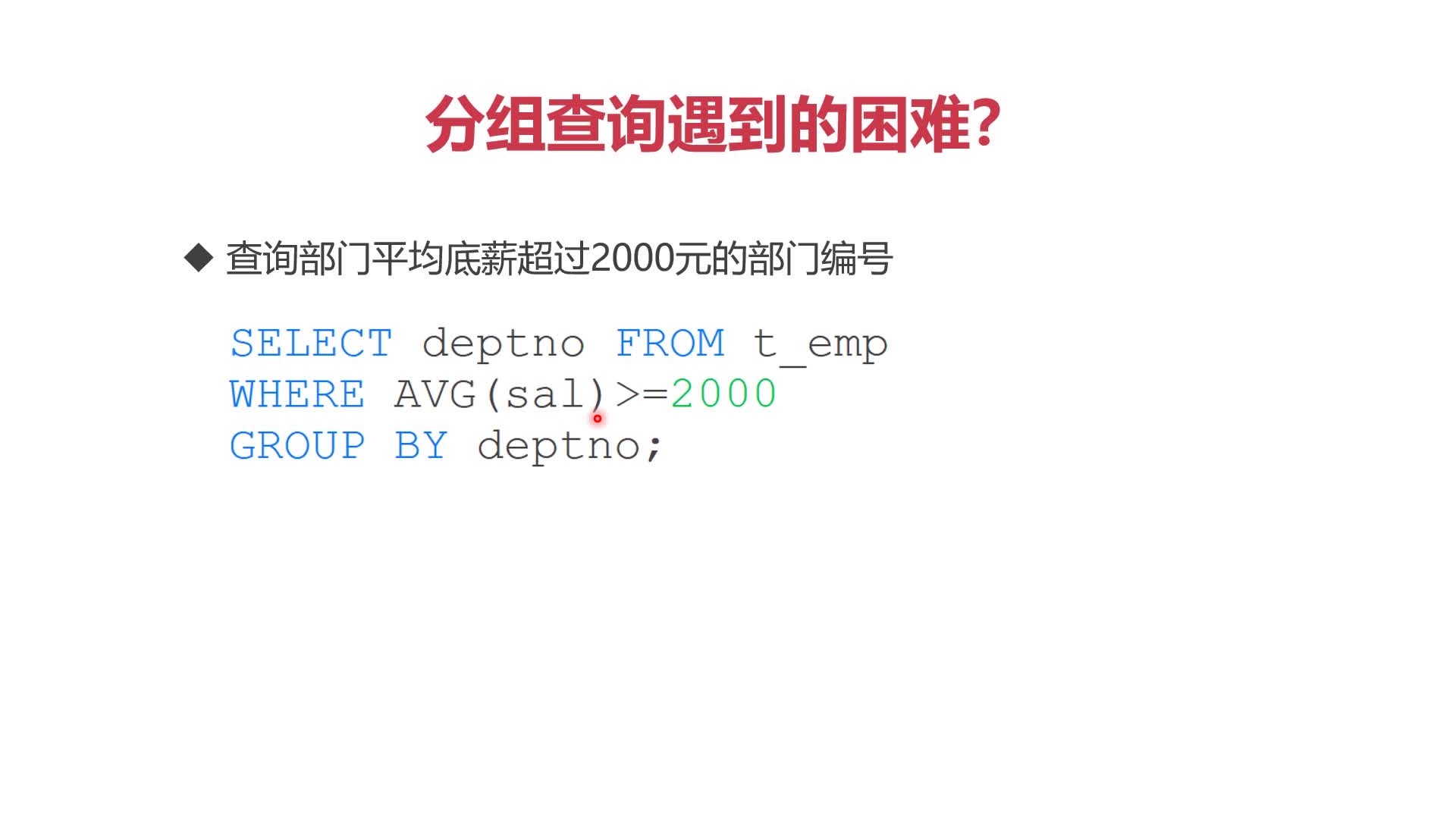 WHERE AVG(sal)>=2000