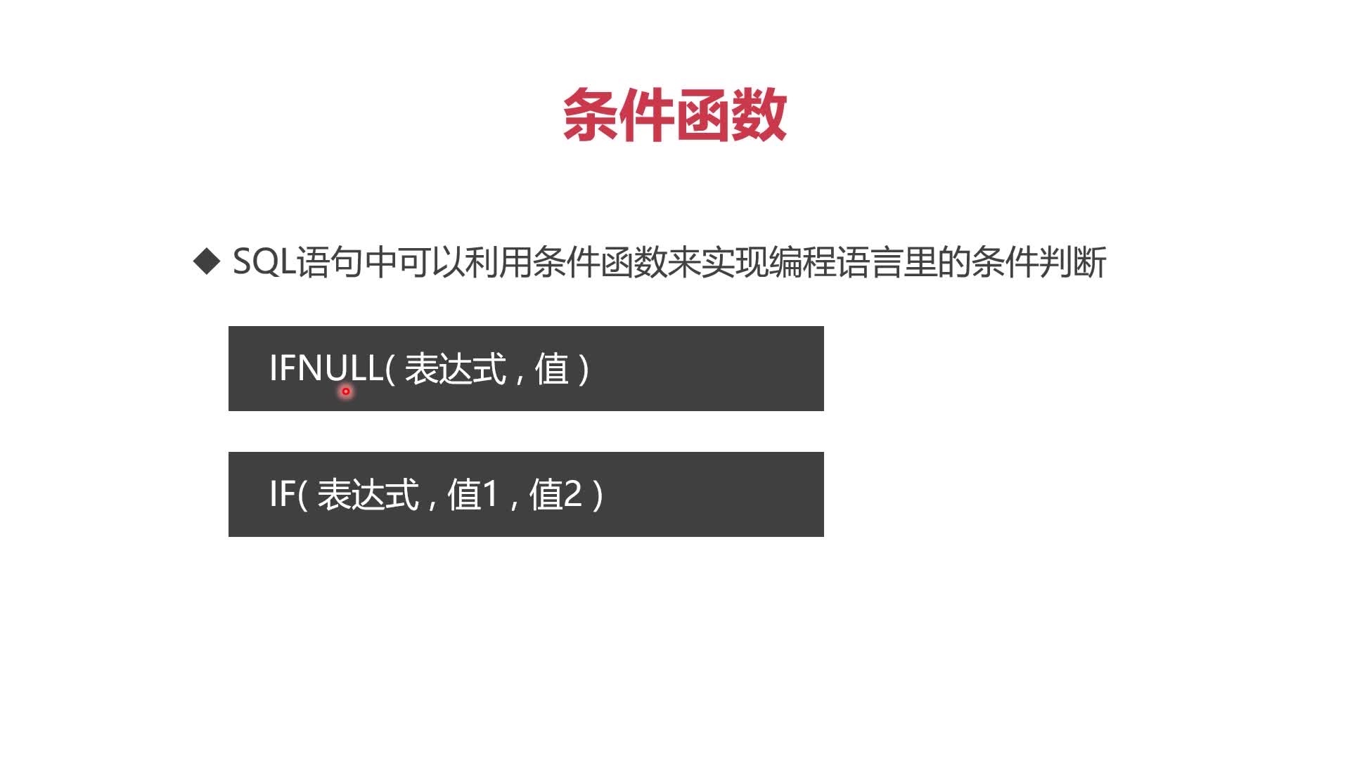 IFNULL(表达式,值) 判断内容是否为空,为空则用参数“值”进行替换。