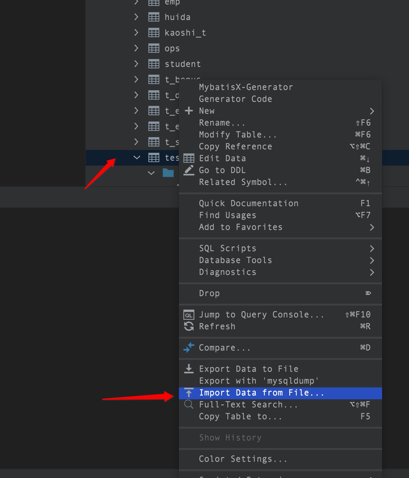 create table test