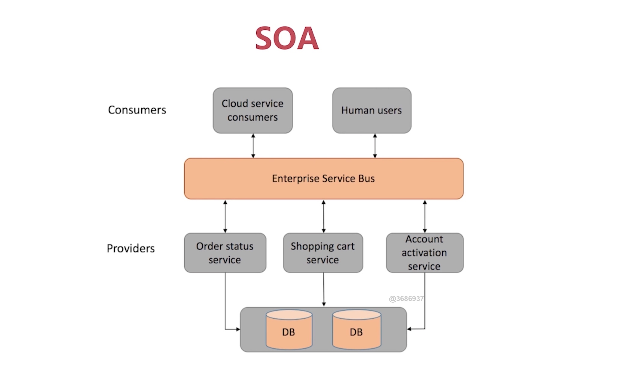 - SOA(Service Oriented Architecture)“面向服务的架构”:他是一种设计方法,其中包含多个服务, 服务之间通过相互依赖最终提供一系列的功能。一个服务 通常以独立的形式存在于操作系统进程中。各个服务之间 通过网络调用